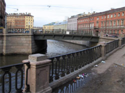 начало "преступления и наказания" напрямую связано с этим мостом: "В начале июля, в чрезвычайно жаркое время, под вечер, один молодой человек вышел из своей каморки, которую нанимал от жильцов в С-м (Столярном) переулке, на улицу и медленно, как бы в нерешимости, отправился к К-ну (Кокушкину) мосту".